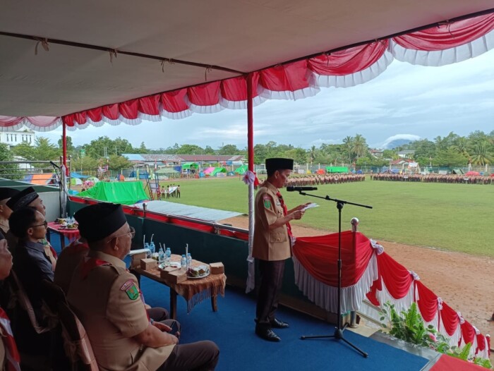 “Tujuan gerakan Pramuka adalah membentuk pribadi yang beriman, bertakwa, berakhlak mulia, berjiwa patriotik, taat hukum, disiplin, menjunjung nilai-nilai luhur bangsa, serta memiliki kecakapan hidup sebagai kader bangsa dalam menjaga dan membangun NKRI,” ujar Bupati.