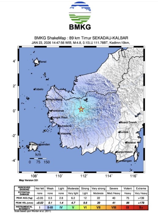 SINTANG – Gempa bumi tektonik berkekuatan magnitudo 4,8 mengguncang wilayah Kabupaten Sintang, Kalimantan Barat, pada Kamis, 23 Januari 2026, sekitar pukul 14.47 WIB. Peristiwa ini sempat menimbulkan kepanikan ringan di tengah masyarakat, terutama warga yang berada di wilayah dekat pusat gempa.