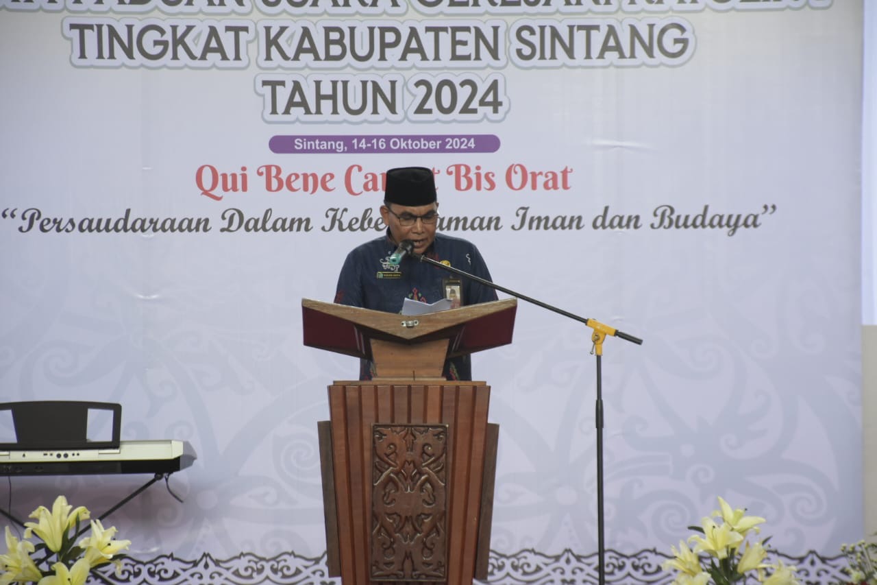 SINTANG – H. Hasib Arista, Kepala Kantor Kementerian Agama Kabupaten Sintang, menyampaikan dukungannya pada pelaksanaan Pesparani Katolik I Tingkat Kabupaten Sintang. Hal tersebut disampaikan H. Hasib Arista saat pembukaan Pesparani Katolik I Tingkat Kabupaten Sintang di Indoor Apang Semangai pada Senin, 14 Oktober 2024.