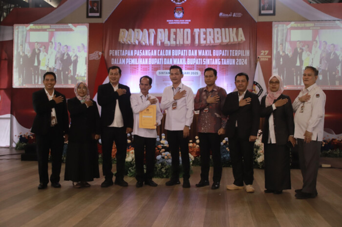 SINTANG – Komisi Pemilihan Umum (KPU) Kabupaten Sintang secara resmi menetapkan pasangan nomor urut 3, Gregorius Herkulanus Bala dan Florensius Ronny, sebagai pemenang Pemilihan Kepala Daerah (Pilkada) Sintang 2025. Pasangan ini meraih suara terbanyak dengan 102.046 suara atau 40,88 persen, didukung oleh koalisi Partai Nasdem, Gerindra, Perindo, PSI, dan PKB. Penetapan pemenang dilakukan dalam Rapat Pleno Terbuka yang digelar pada Kamis, 9 Januari 2025, di Aula Serantung Waterpark.