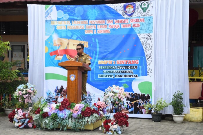 SINTANG – Bupati Sintang yang diwakili Pelaksana Tugas Asisten II Bidang Perekonomian dan Pembangunan, Edy Harmaini, S.E., M.Si, menghadiri Dies Natalis ke-75 SMP Negeri 1 Sintang yang dirangkaikan dengan peluncuran Posyandu Remaja, website sekolah, serta presentasi karya ilmiah remaja pada Selasa, 10 Februari 2026.
